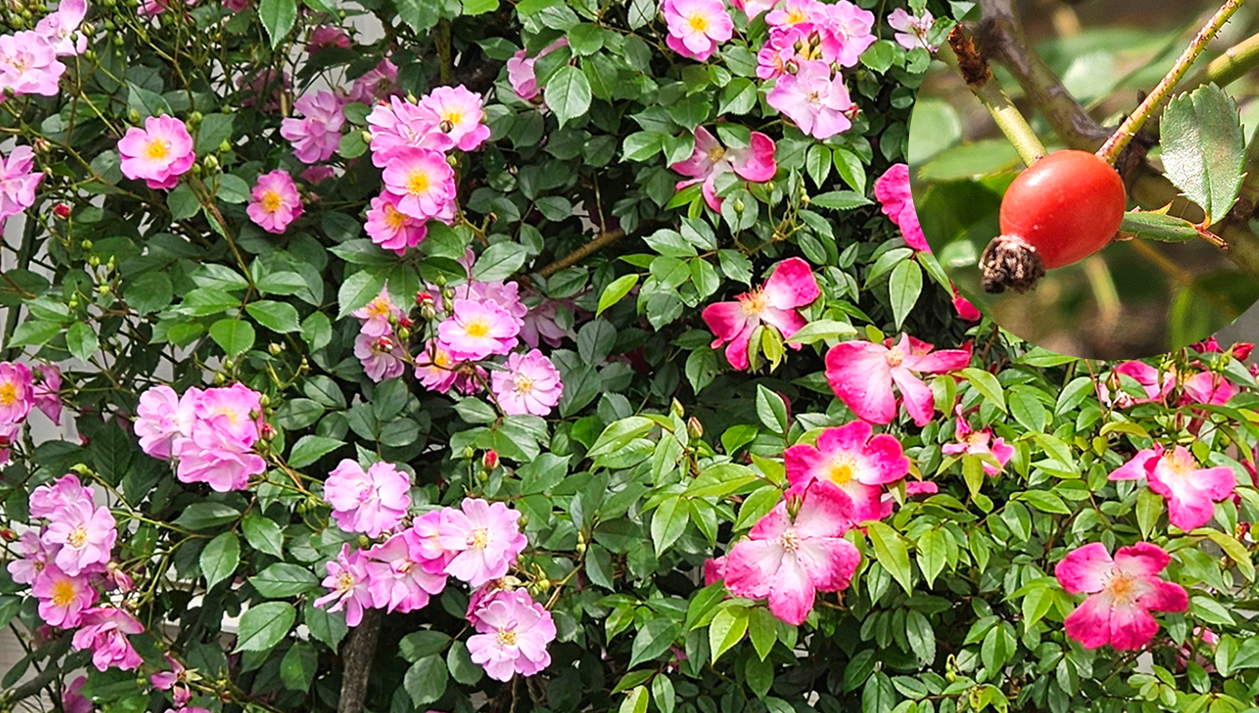 庭先に咲いた野バラです。季節が変わりこの野バラに実がなりました。小さな実で、驚きました。